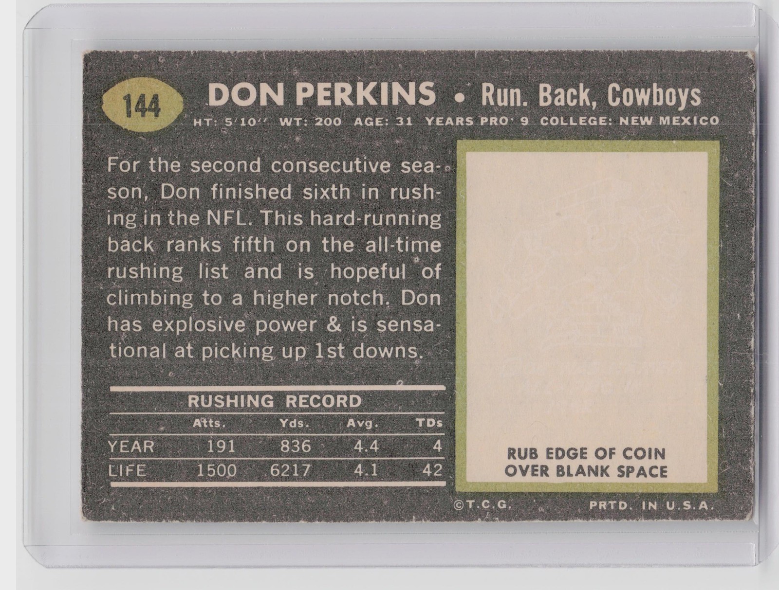 1969 Topps Don Perkins #144 Cowboys
