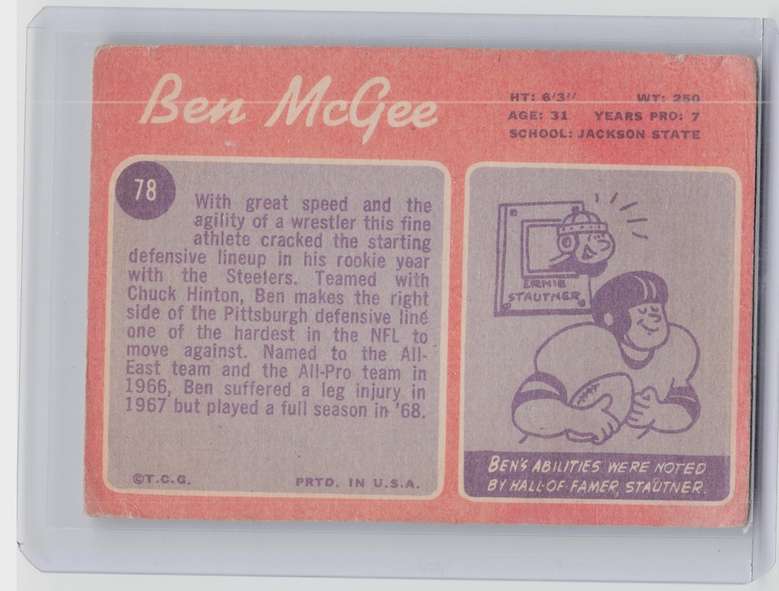 1970 Topps Ben McGee #78 Steelers