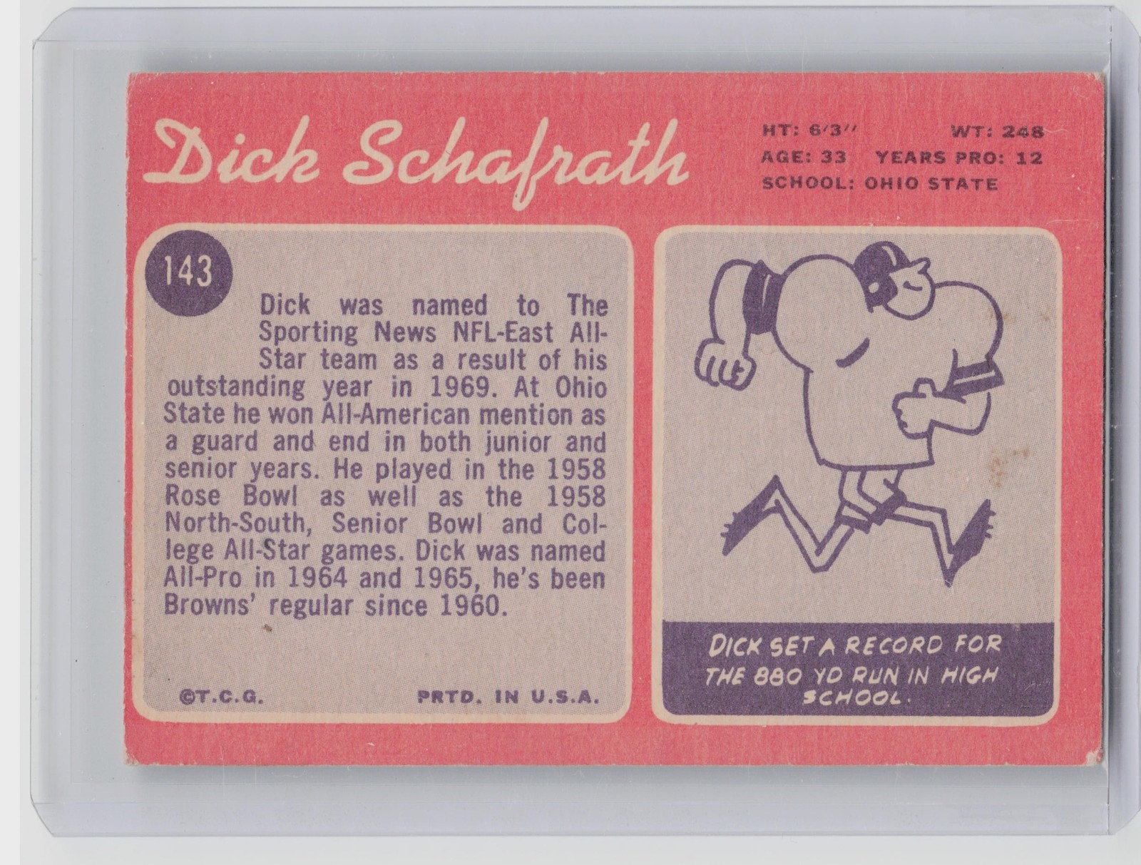 1970 Topps Dick Schafrath #143 Browns