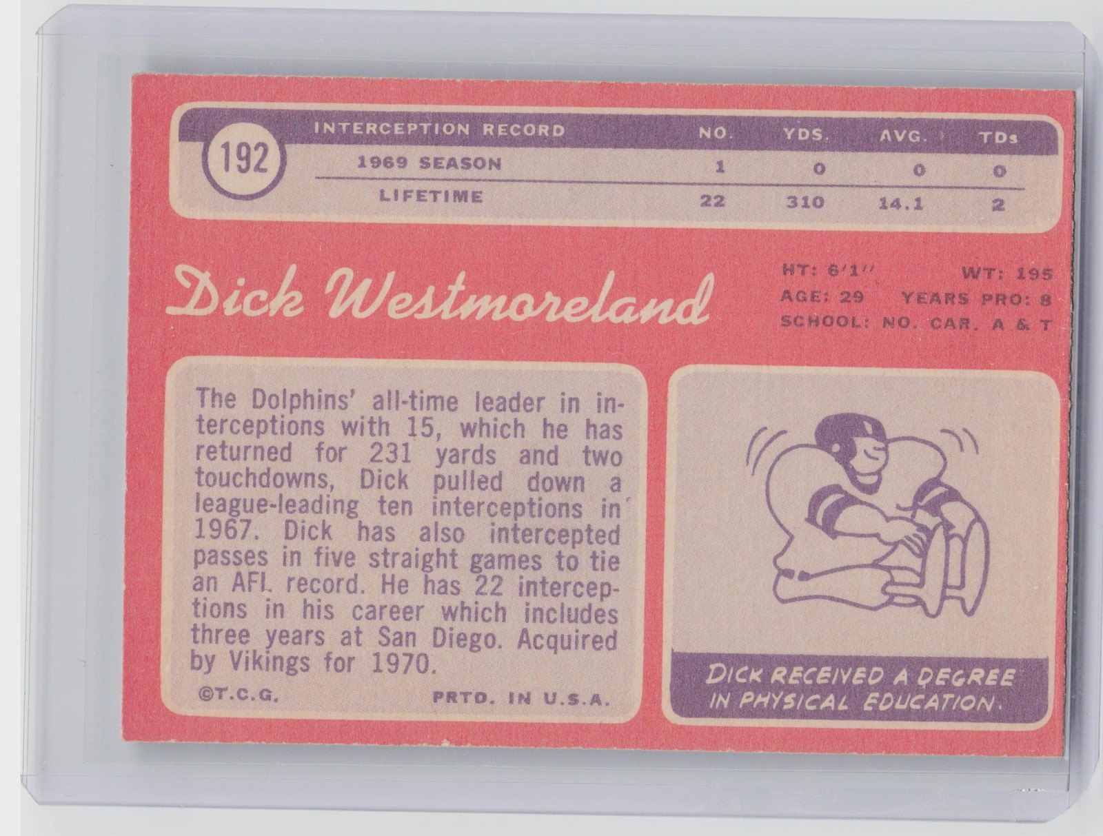 1970 Topps Dick Westmoreland #192 Vikings
