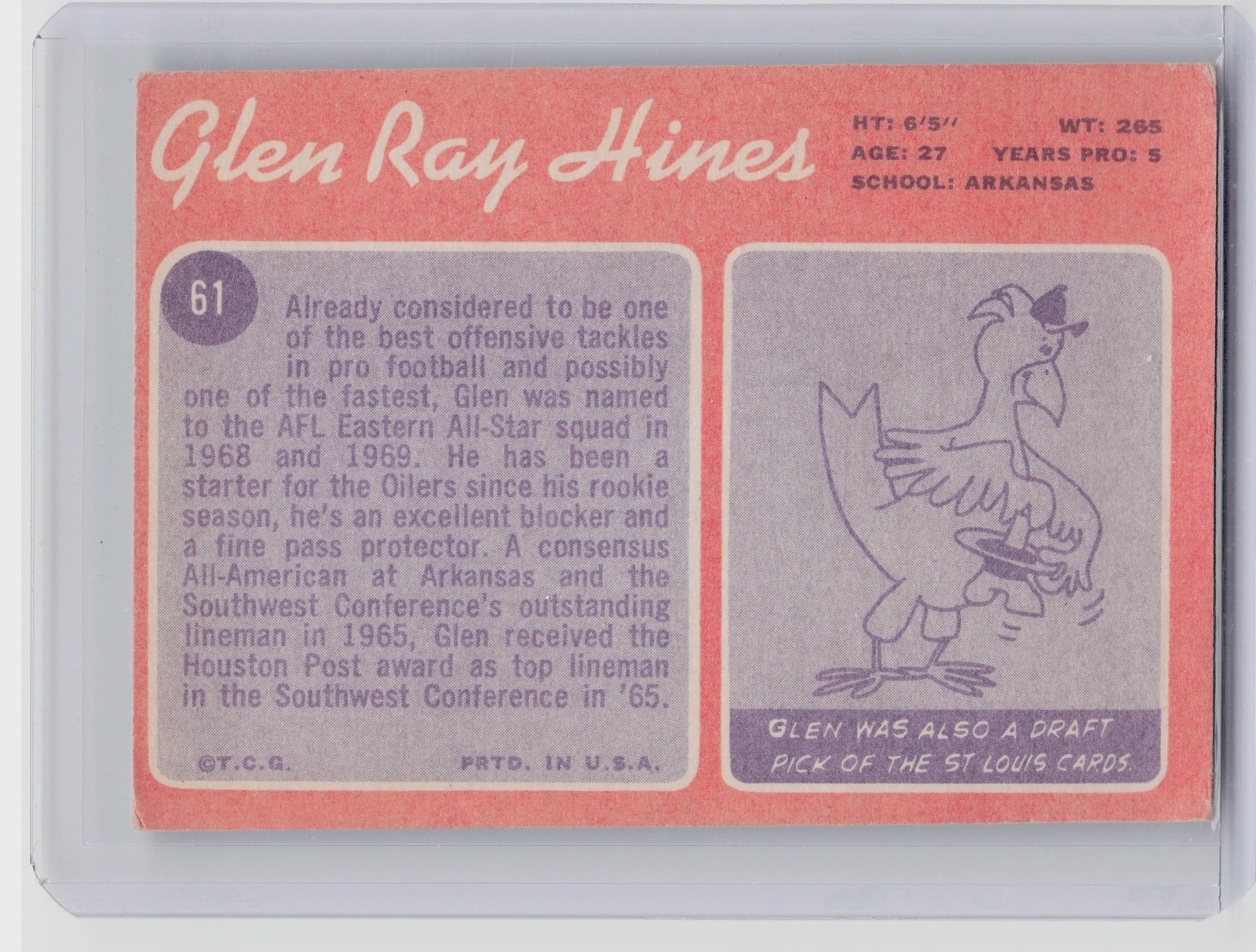 1970 Topps Glen Ray Hines RC #61 Oilers