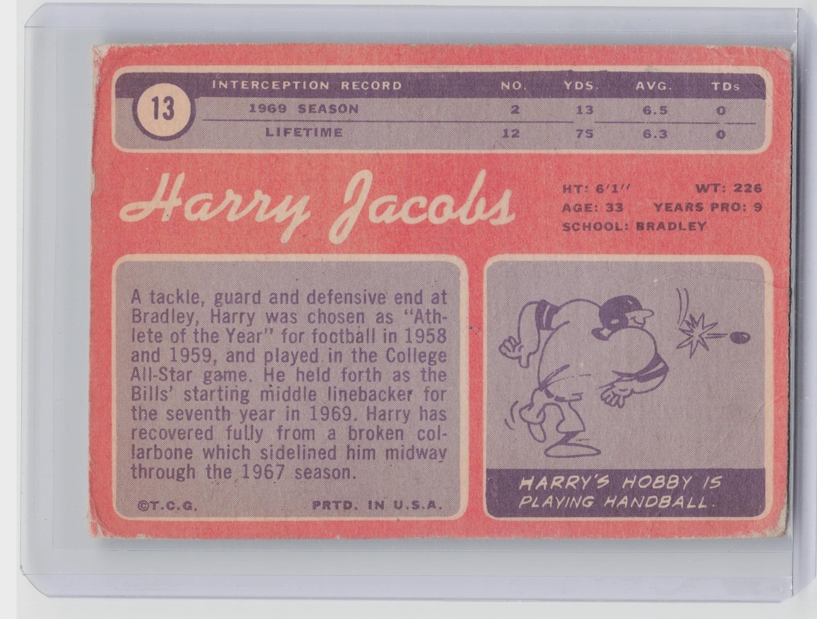 1970 Topps Harry Jacobs #13 Bills