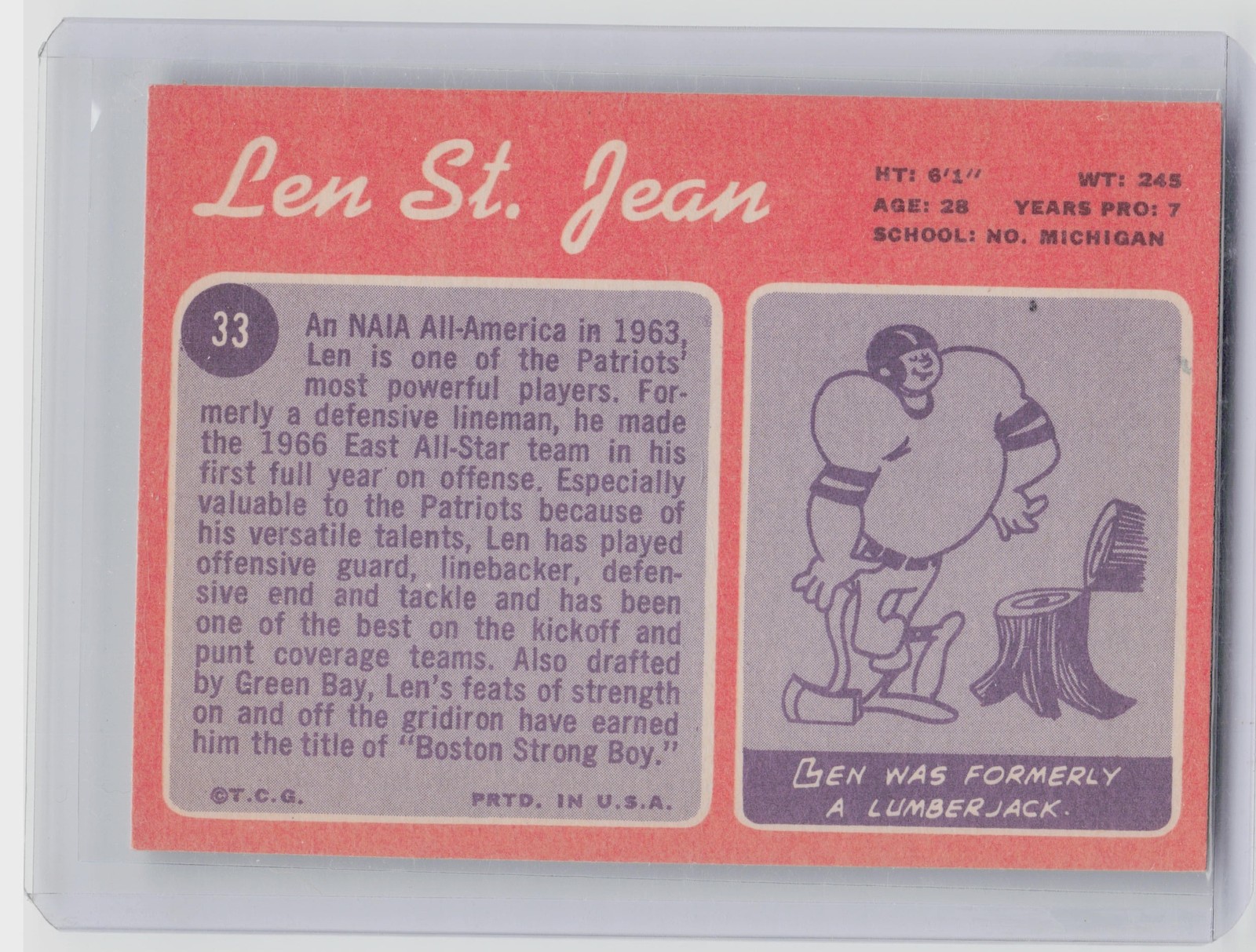 1970 Topps Len St. Jean RC #33 Patriots