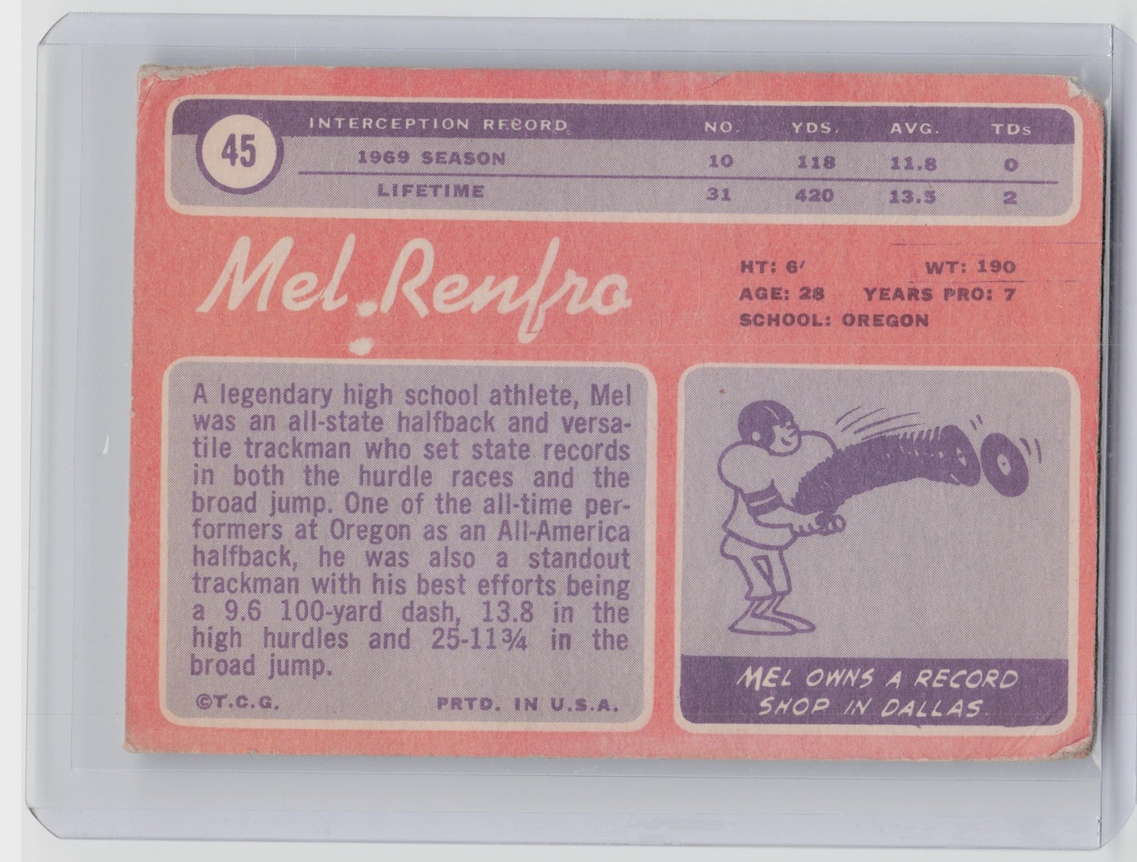 1970 Topps Mel Renfro #45 Cowboys