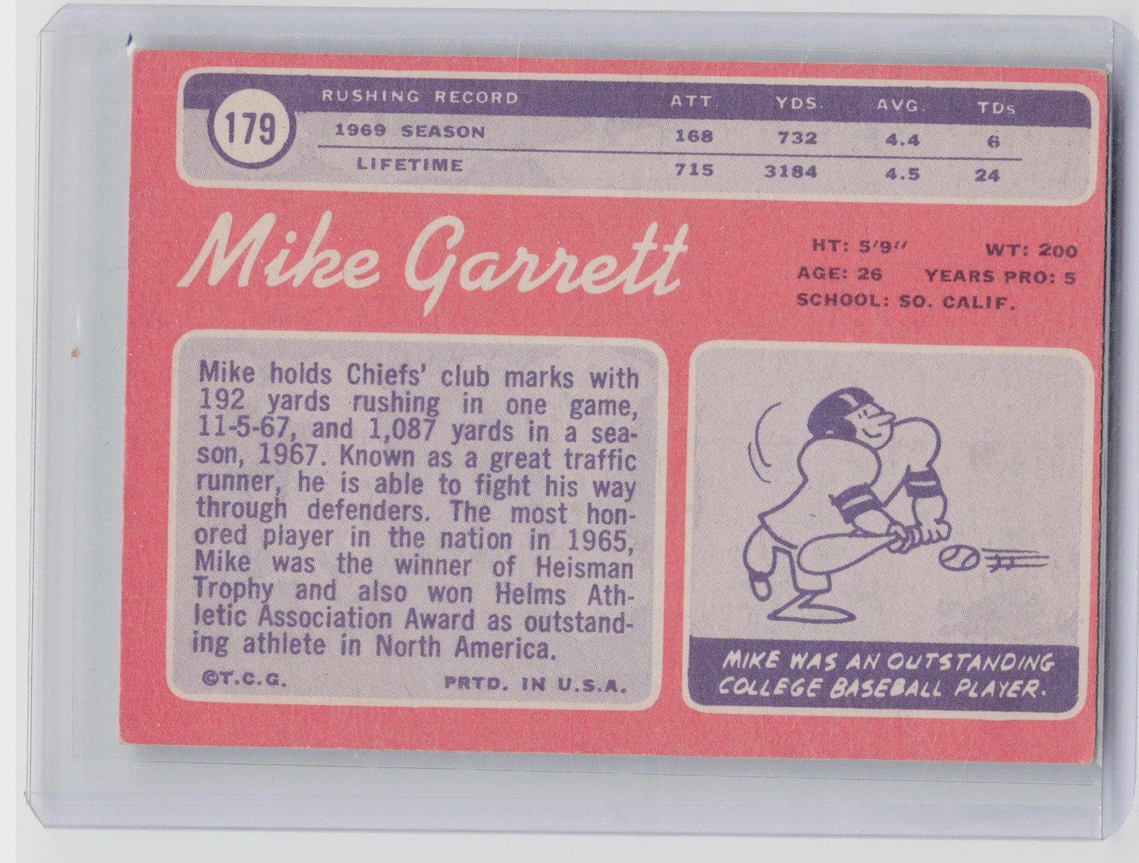 1970 Topps Mike Garrett RC #179 Chiefs