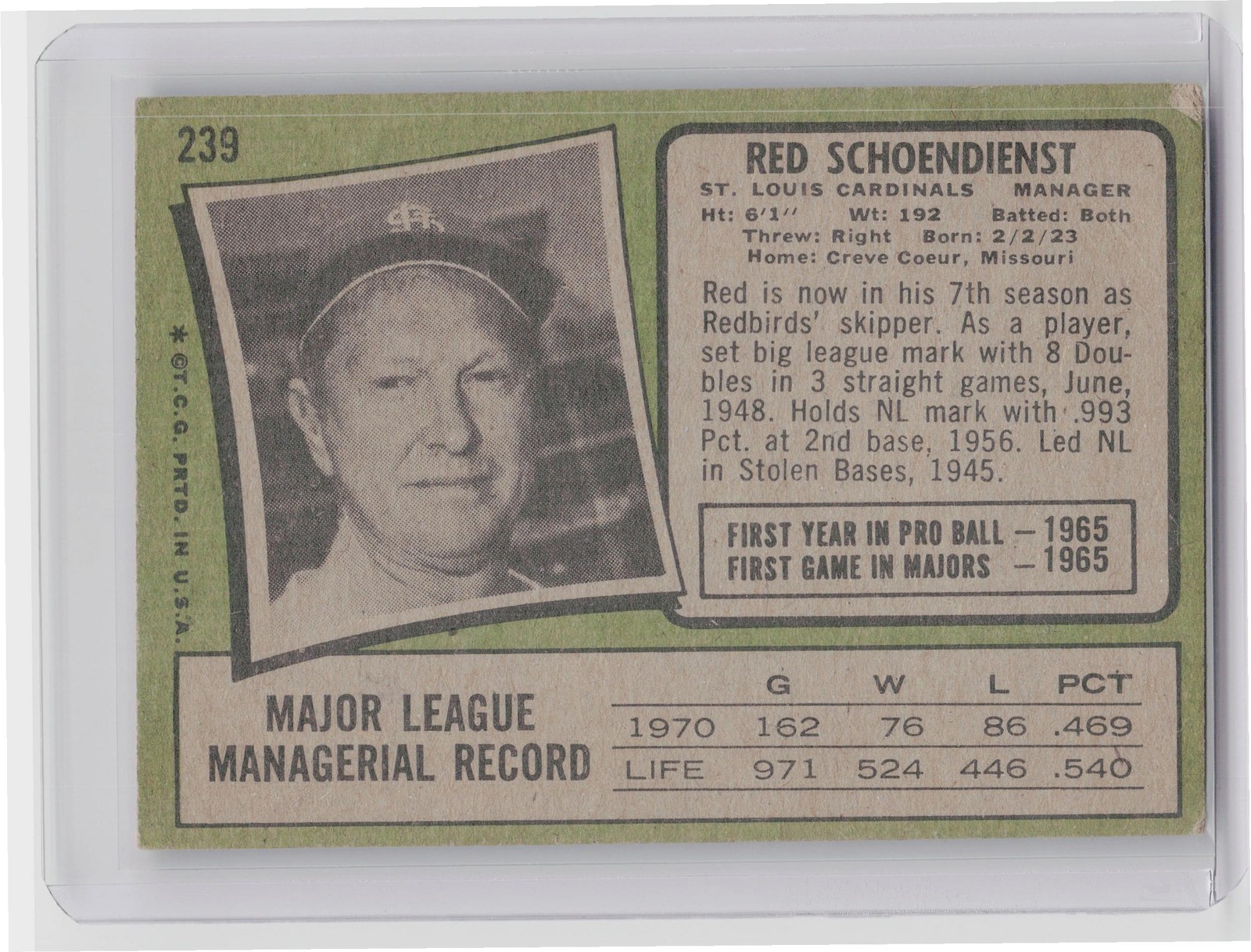 1971 Topps Red Schoendienst #239 Cardinals