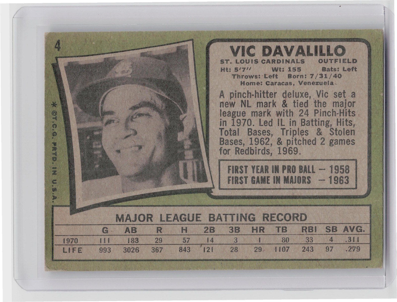 1971 Topps Vic Davalillo #4 Cardinals