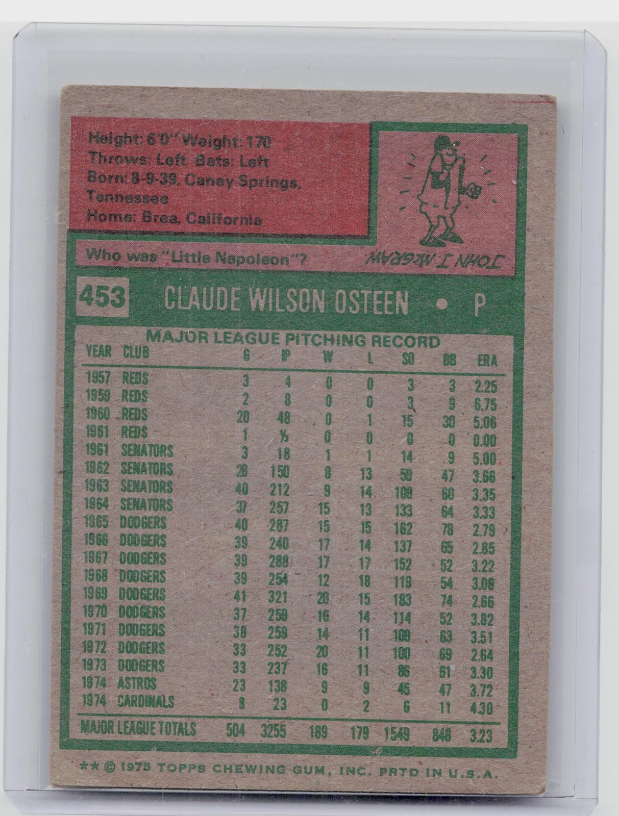 1975 Topps Claude Osteen #453 Cardinals