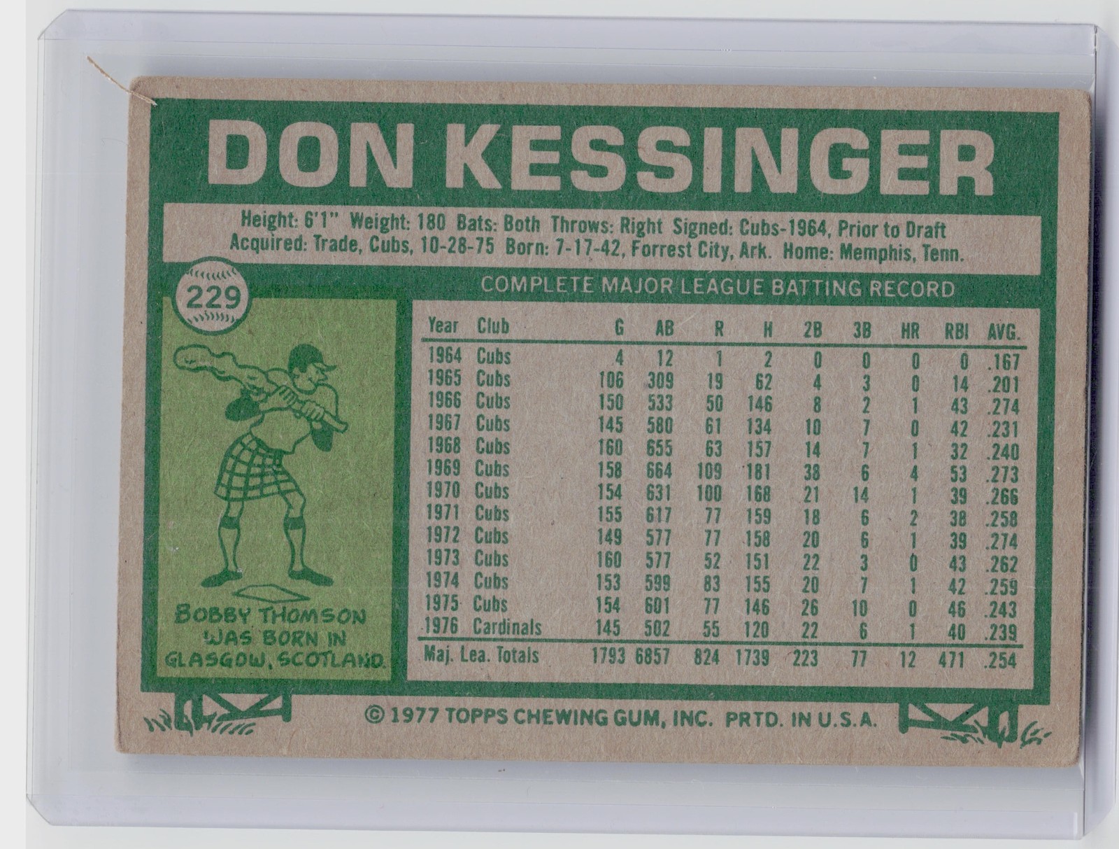 1977 Topps Don Kessinger #229 Cardinals