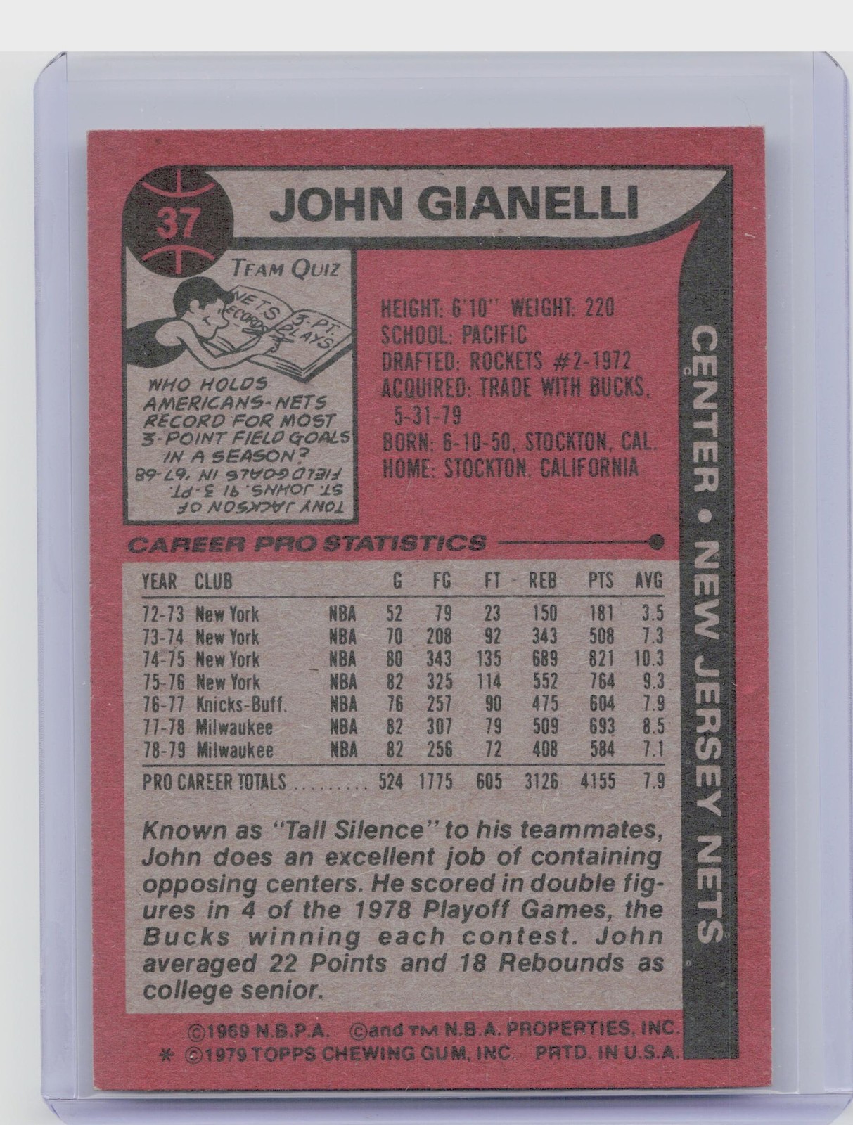 1979-80 Topps John Gianelli #37 Nets
