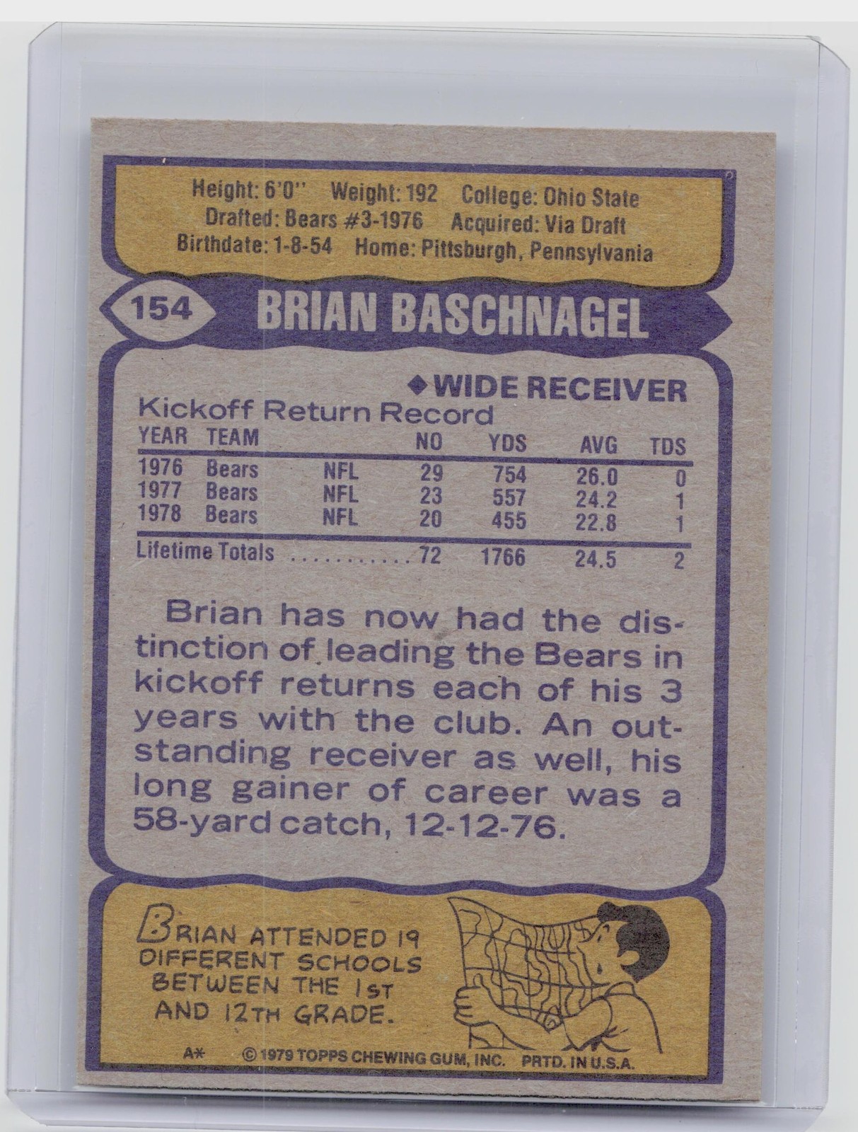 1979 Topps Brian Baschnagel #154 Bears