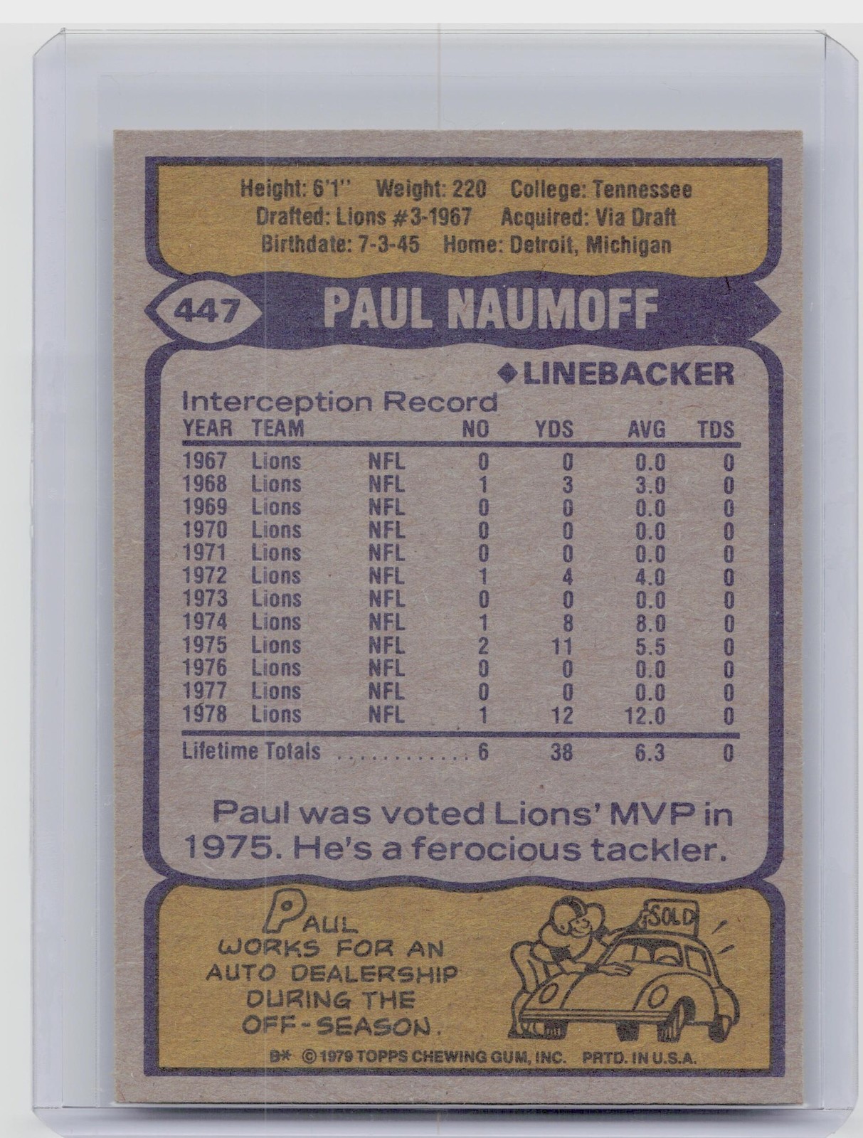 1979 Topps Paul Naumoff Cream Colored Back #447 Lions