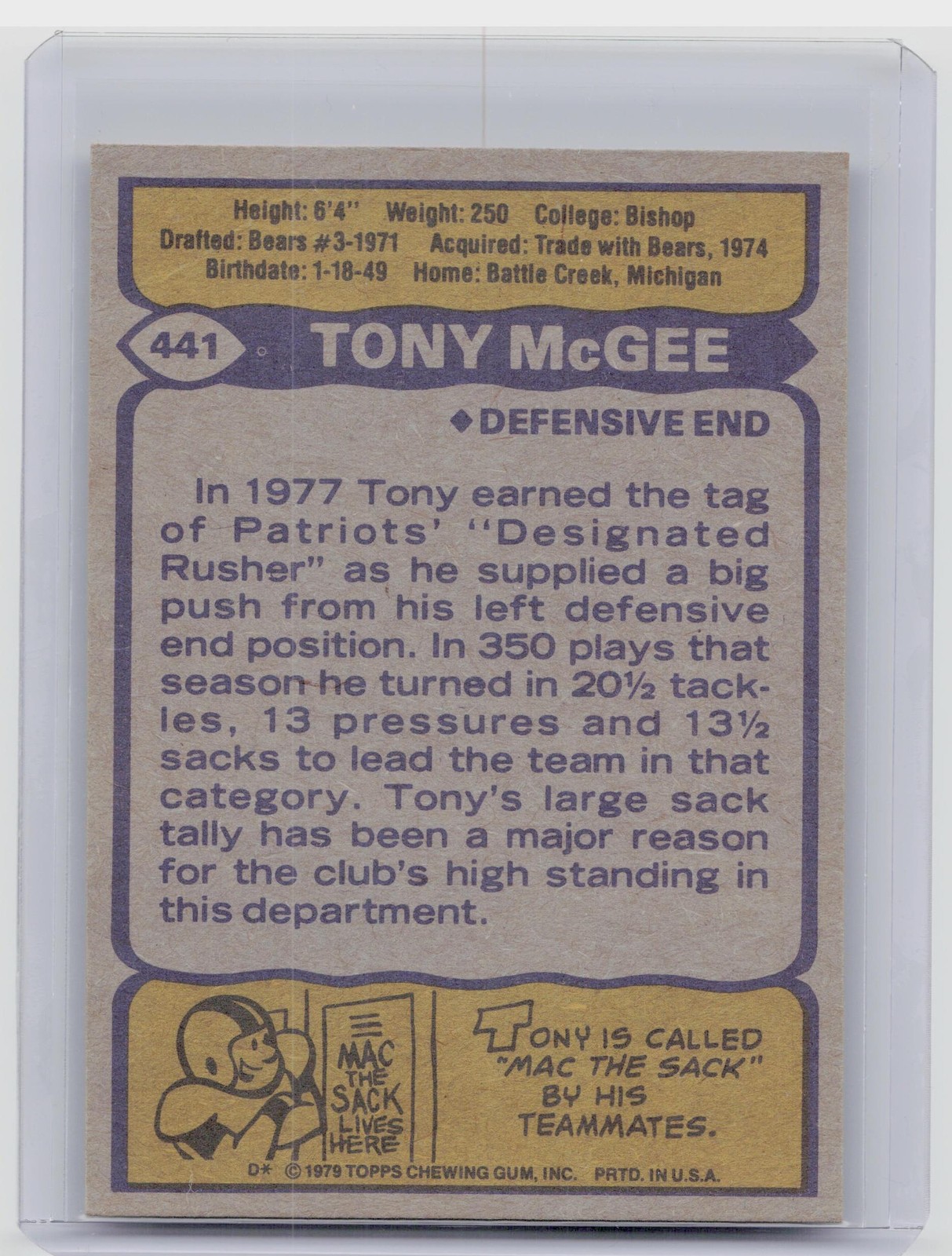1979 Topps Tony McGee #441 Patriots