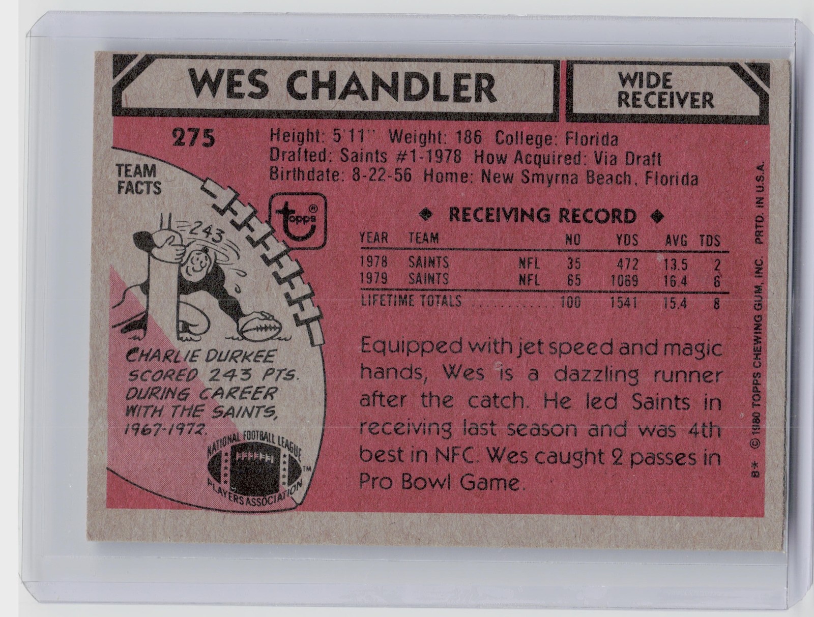 1980 Topps Wes Chandler RC #275 Saints