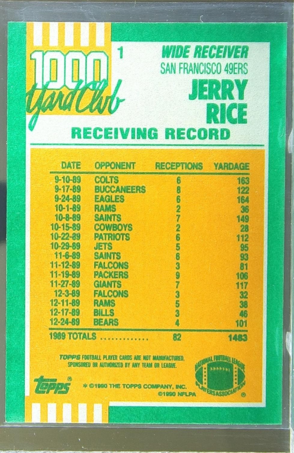1990 Topps Jerry Rice VAR #1 49ers 1000 Yard Club