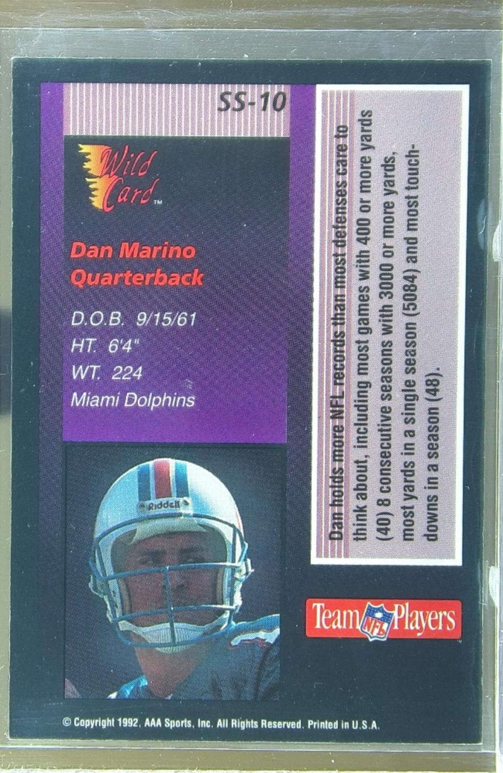 1992 Wild Card Dan Marino #SS-10 Dolphins Stat Smashers