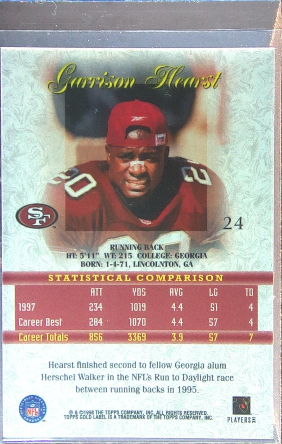1998 Topps Gold Label Garrison Hearst Class 2 #24 49ers