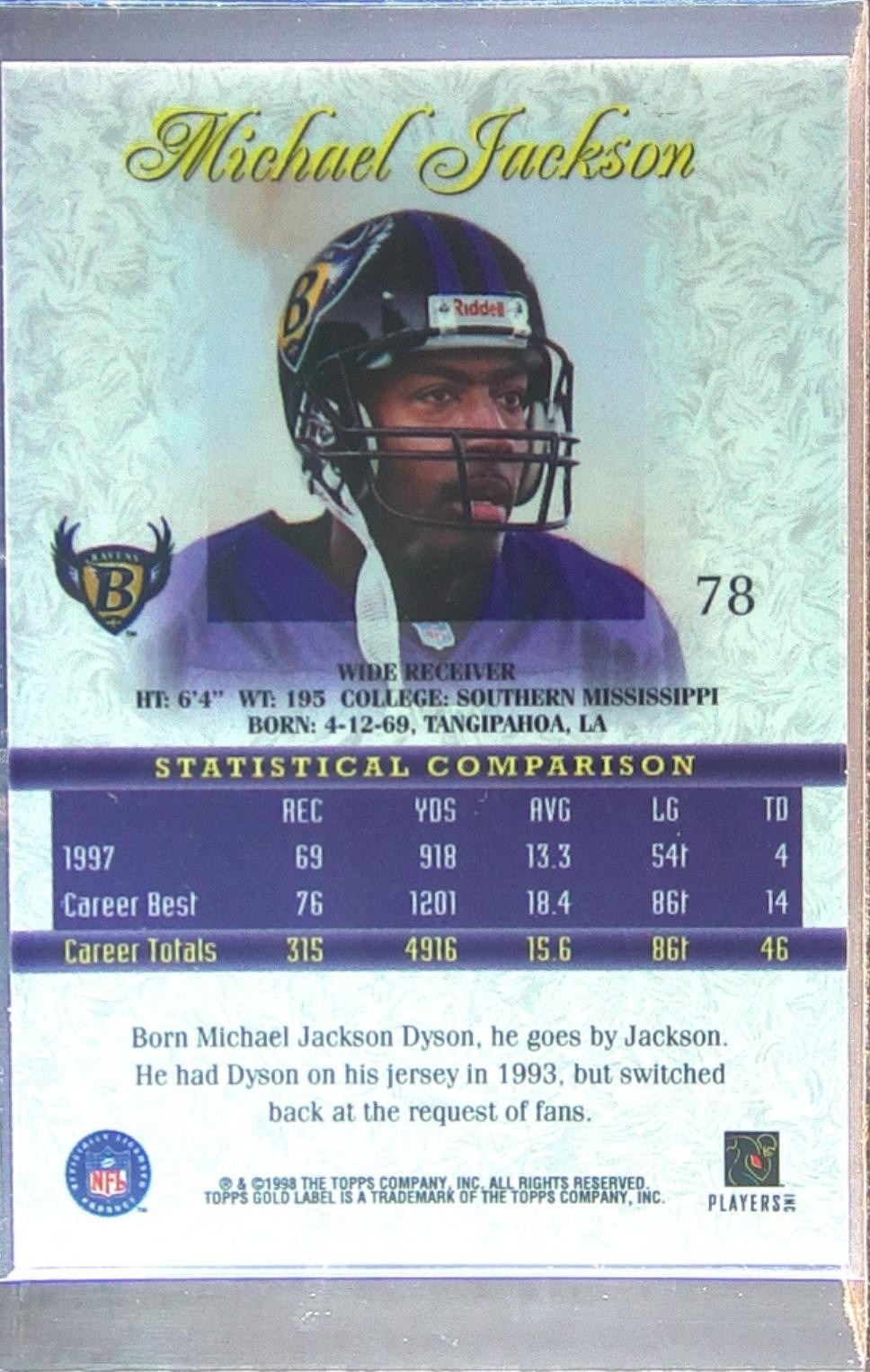 1998 Topps Gold Label Michael Jackson #78 Ravens