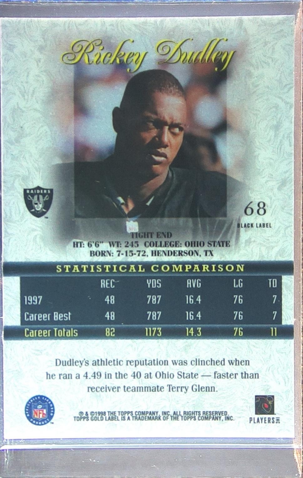 1998 Topps Gold Label Rickey Dudley Class 3 #68 Raiders