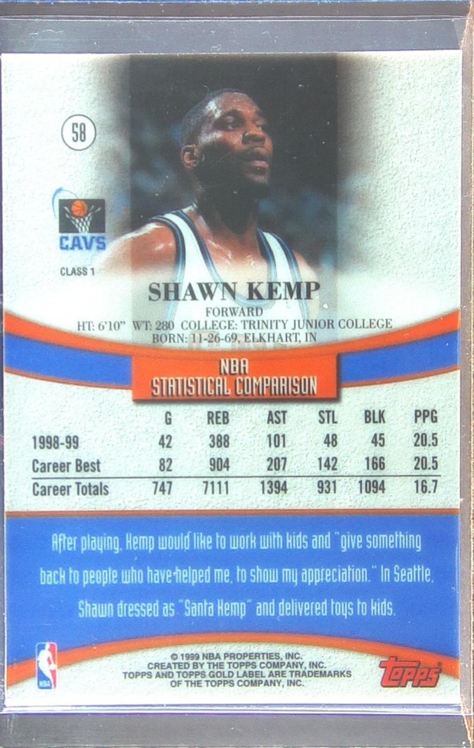 1999-00 Topps Gold Label Shawn Kemp #58 Cavaliers