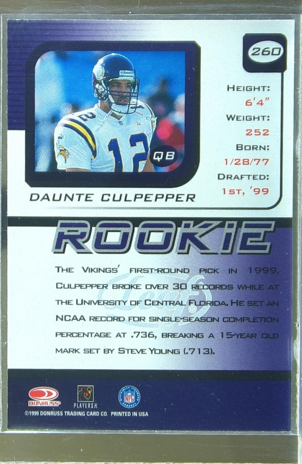 1999 Leaf Rookies & Stars Daunte Culpepper RC #260 Vikings
