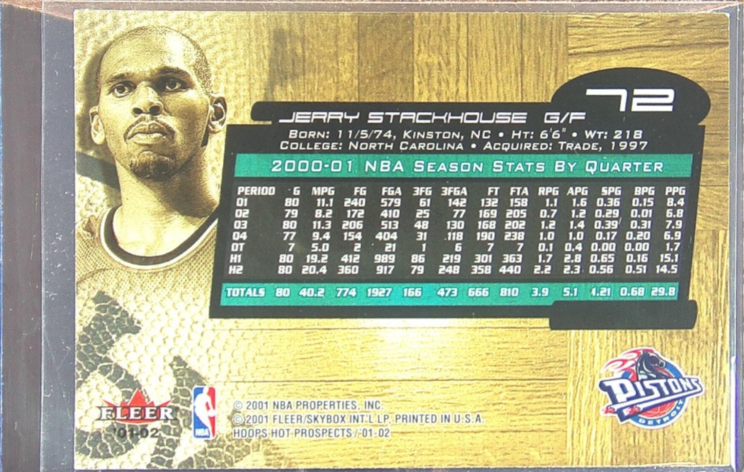 2001-02 Hoops Hot Prospects Jerry Stackhouse #72 Pistons
