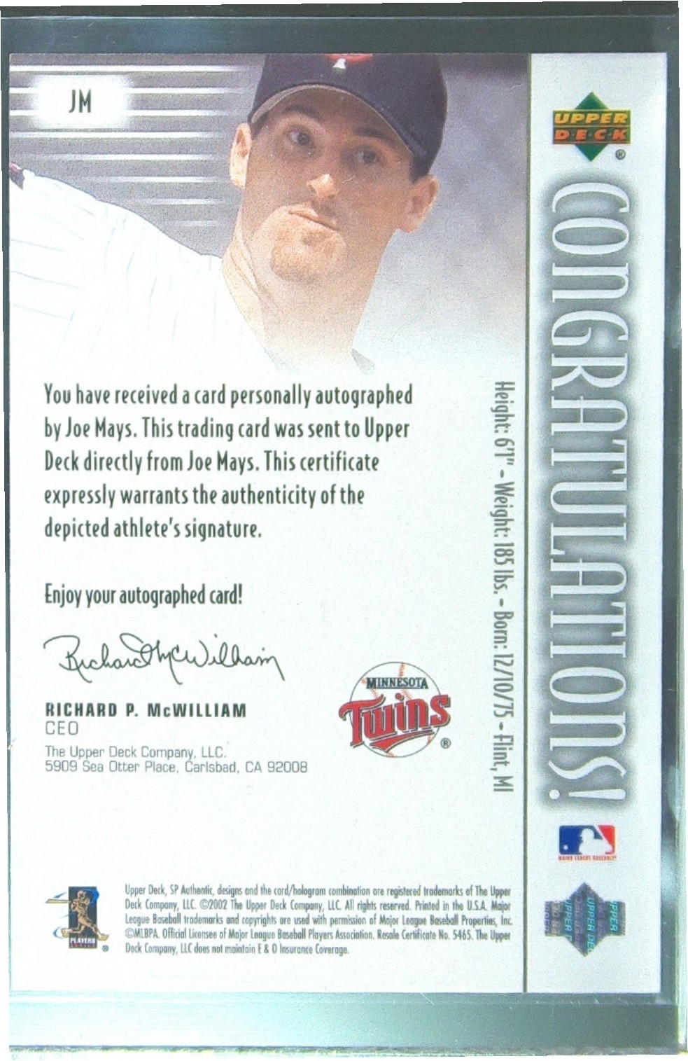 2002 SP Authentic Joe Mays /469 Auto #JM Twins Chirography