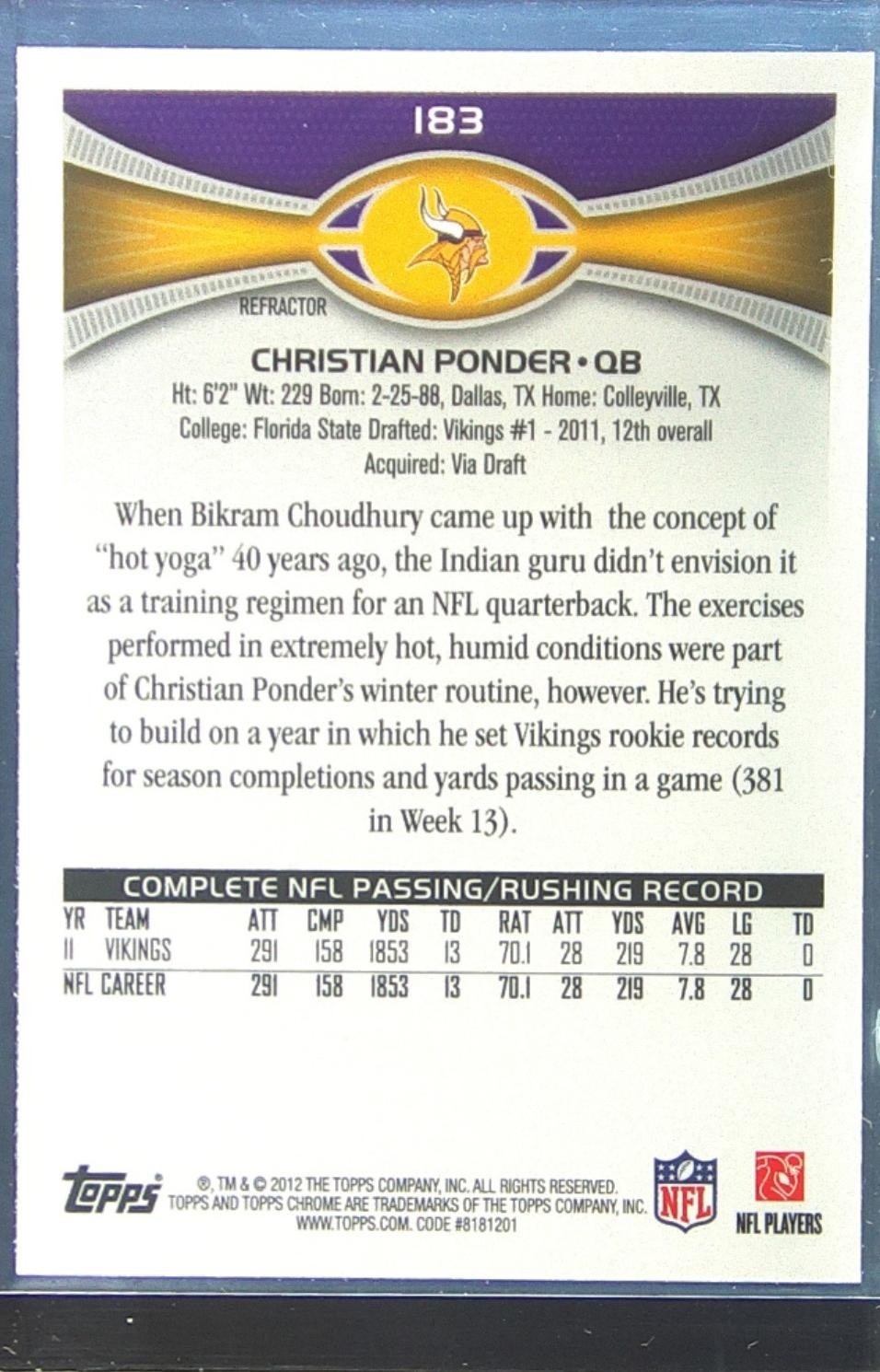 2012 Topps Chrome Christian Ponder Orange Refractors #183 Vikings
