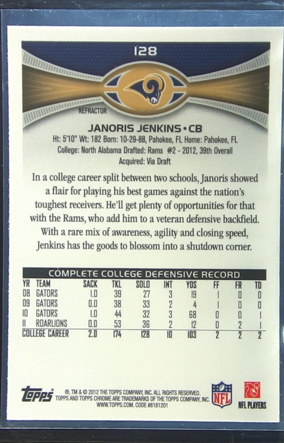 2012 Topps Chrome Janoris Jenkins Orange Refractors RC #128 Rams