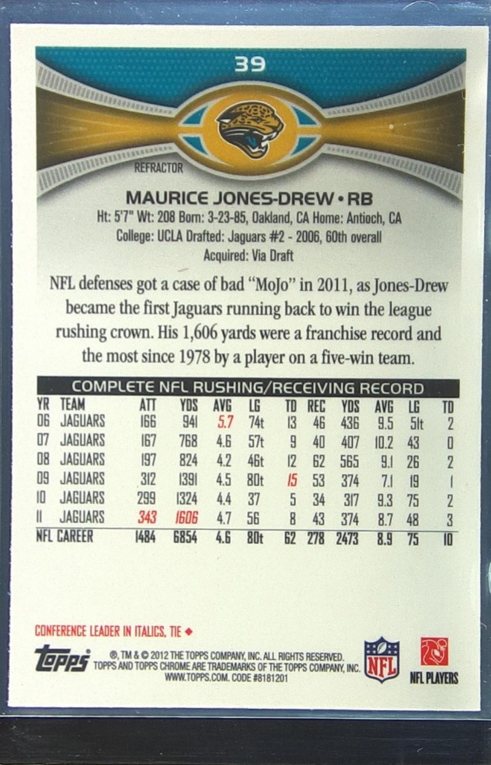2012 Topps Chrome Maurice Jones-Drew Orange Refractors #39 Jaguars