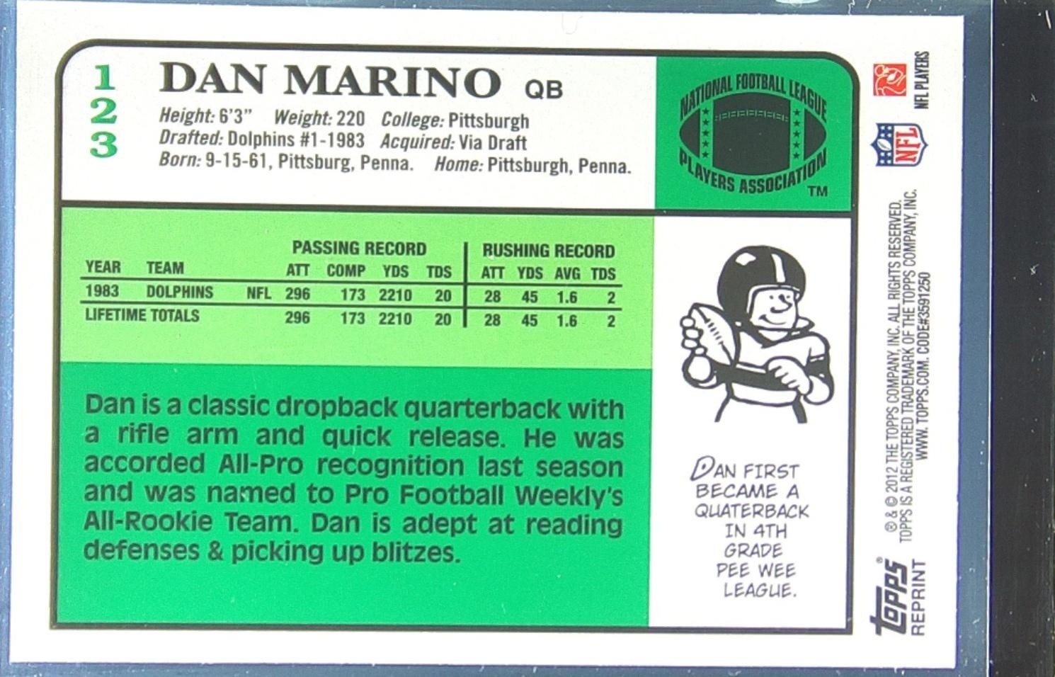 2012 Topps Dan Marino #123 Dolphins Rookie Reprint