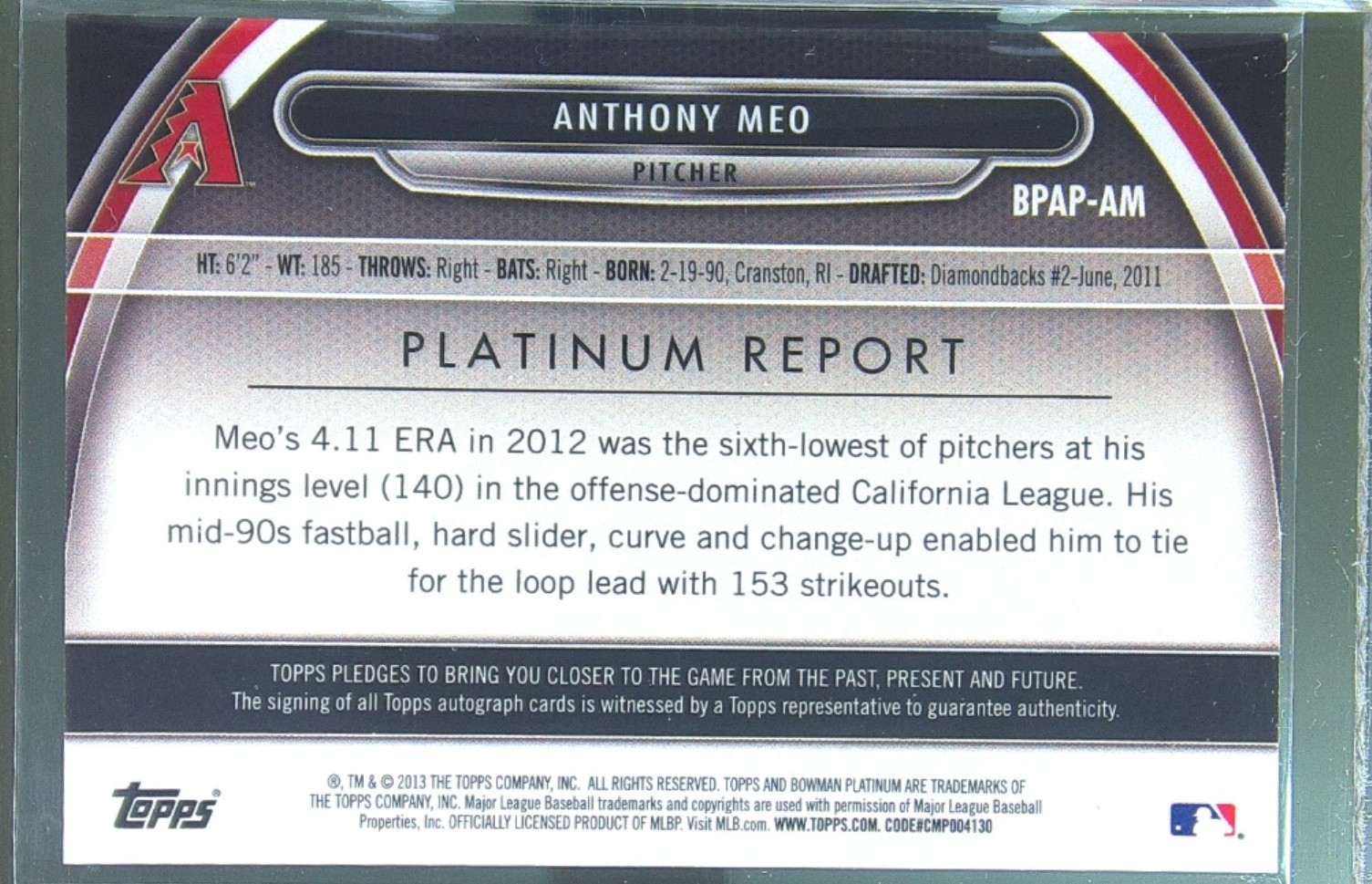 2013 Bowman Platinum Anthony Meo Auto #BPAP-AM Diamondbacks Prospect Autographs