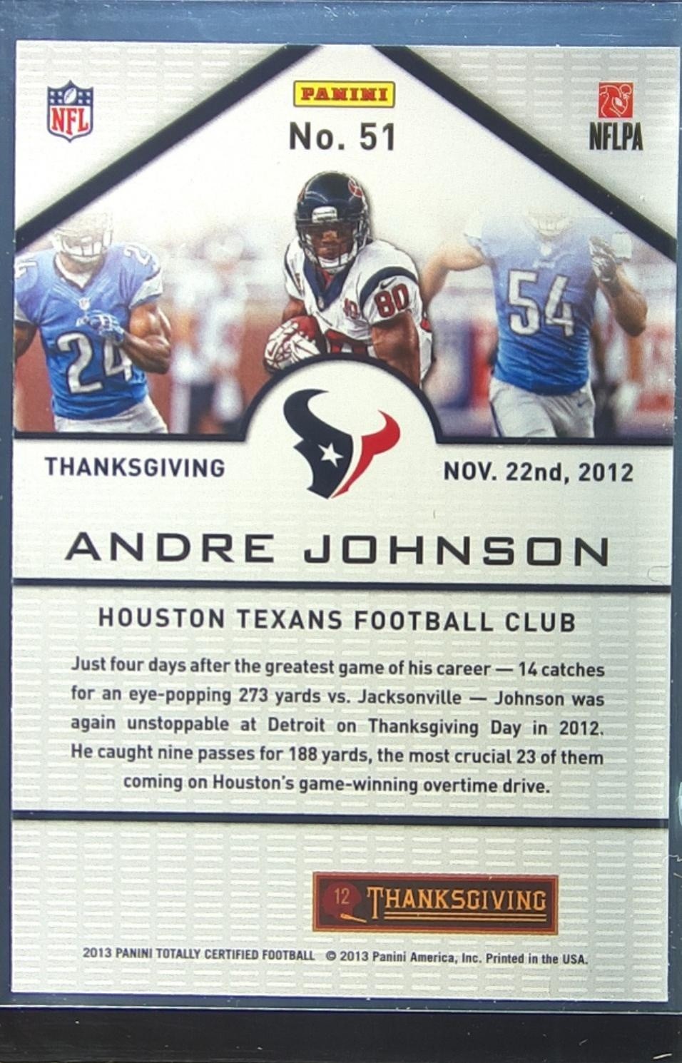 2013 Panini Totally Certified Andre Johnson #51 Texans