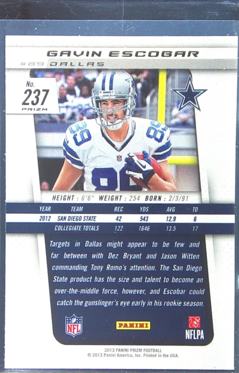 2013 Prizm Gavin Escobar Prizms Light Blue Pulsar RC #237 Cowboys