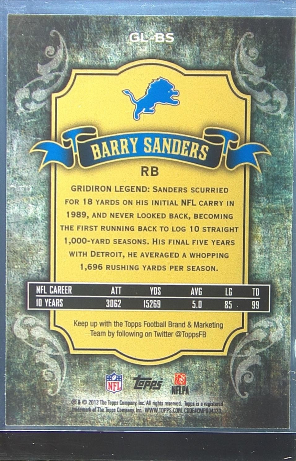 2013 Topps Barry Sanders #GL-BS Lions Gridiron Legends