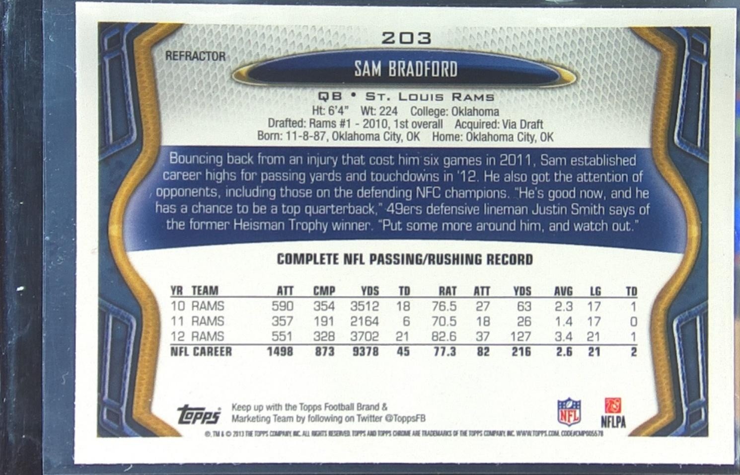 2013 Topps Chrome Sam Bradford Orange Refractors #203 Rams