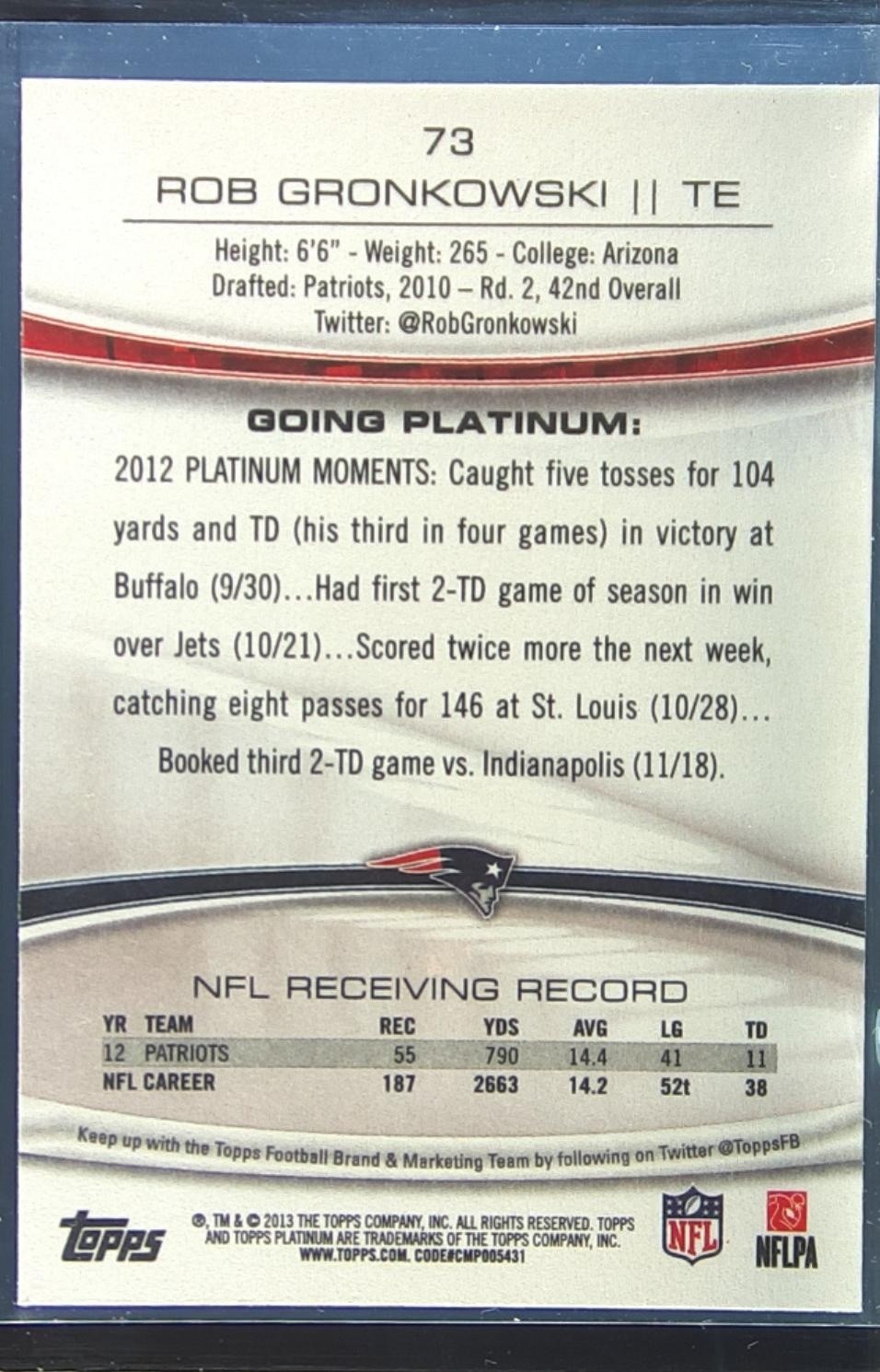 2013 Topps Platinum Rob Gronkowski #73 Patriots