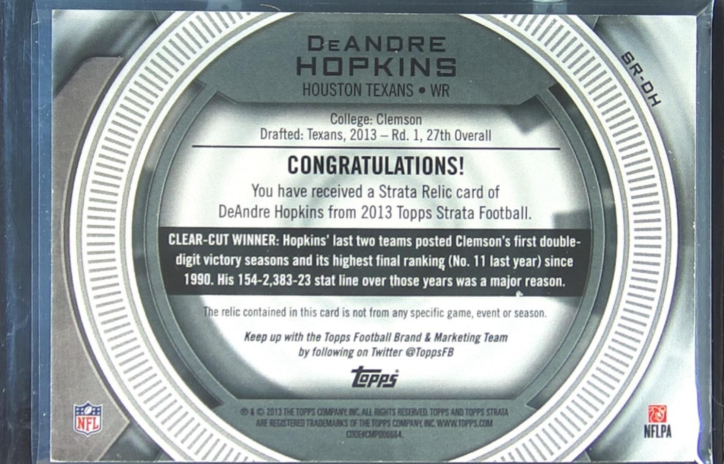 2013 Topps Strata DeAndre Hopkins /35 JSY #SR-DH Texans Relics Emerald Patch RC