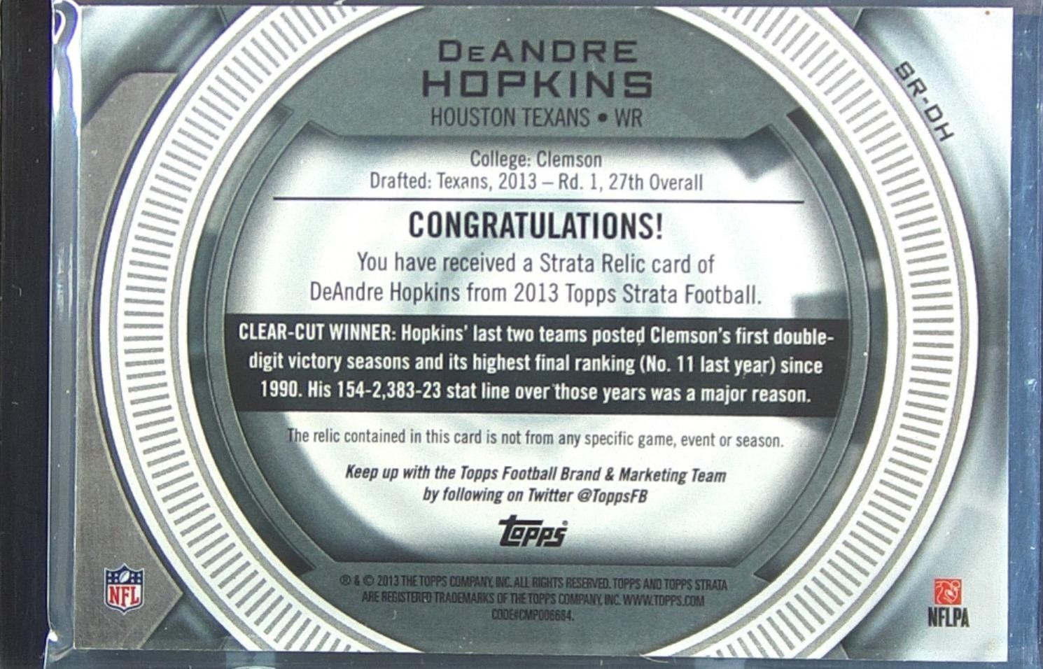 2013 Topps Strata DeAndre Hopkins /90 JSY RC #SR-DH Texans Relics Gold Patch