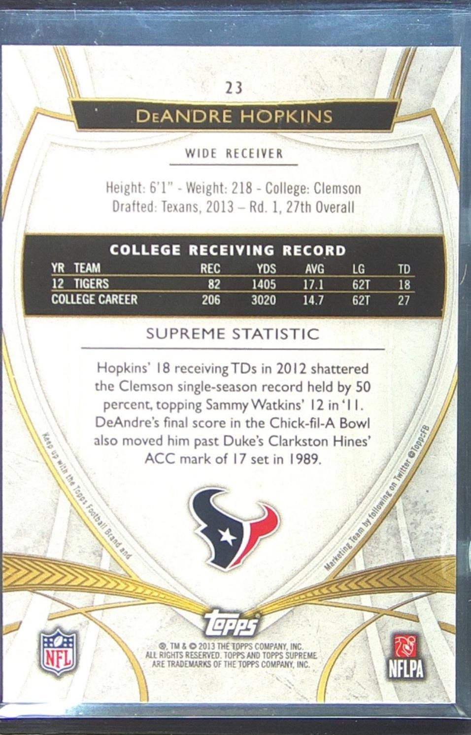 2013 Topps Supreme DeAndre Hopkins Violet /99 #23 Texans