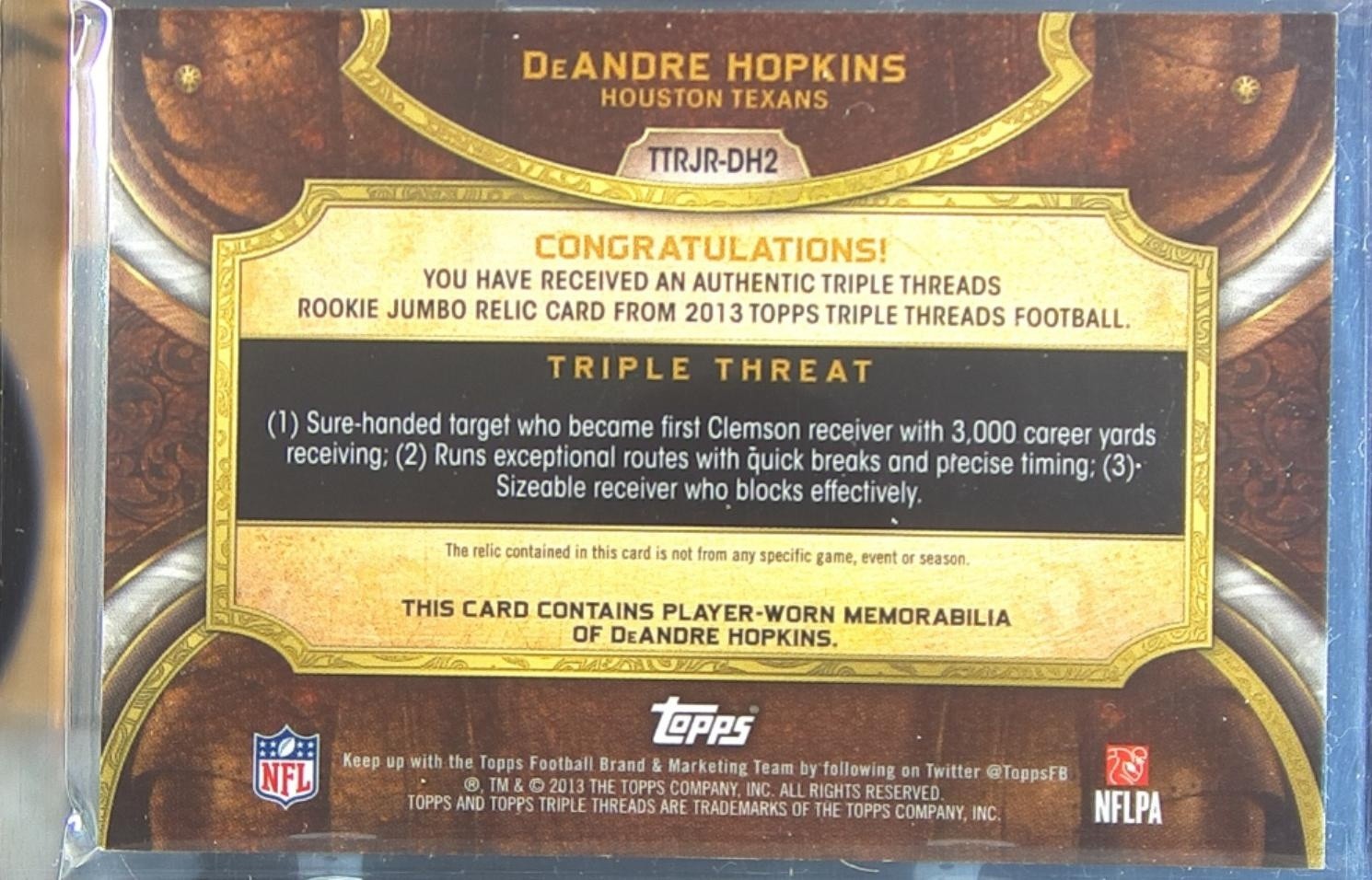 2013 Triple Threads DeAndre Hopkins /10 JSY RC #TTRJR-DH2 Texans Rookie Relic