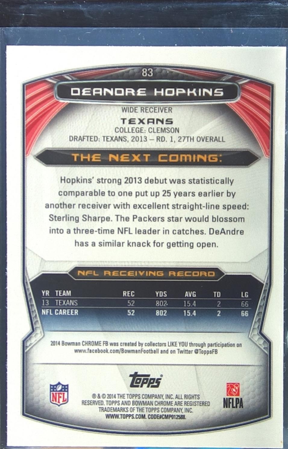 2014 Bowman Chrome DeAndre Hopkins Refractor #83 Texans