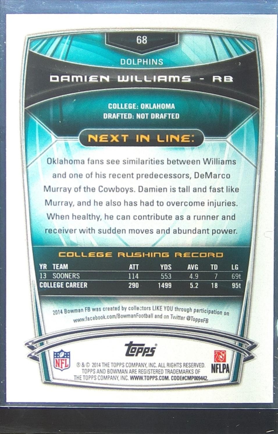 2014 Bowman Damien Williams Rookies RC #68 Dolphins