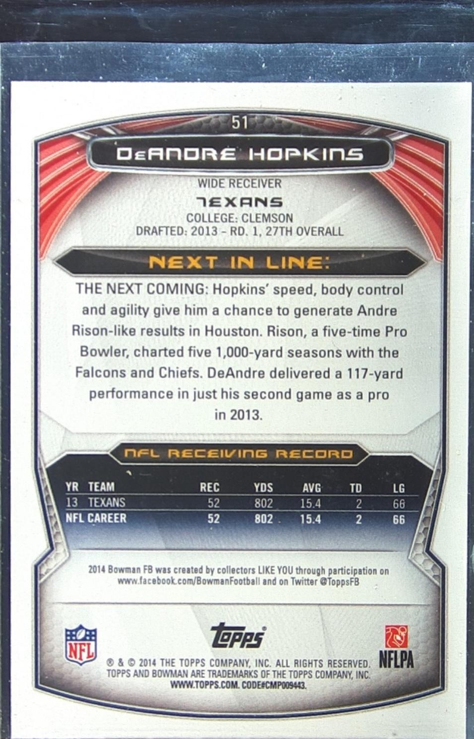 2014 Bowman DeAndre Hopkins Veterans Rainbow Black #51 Texans