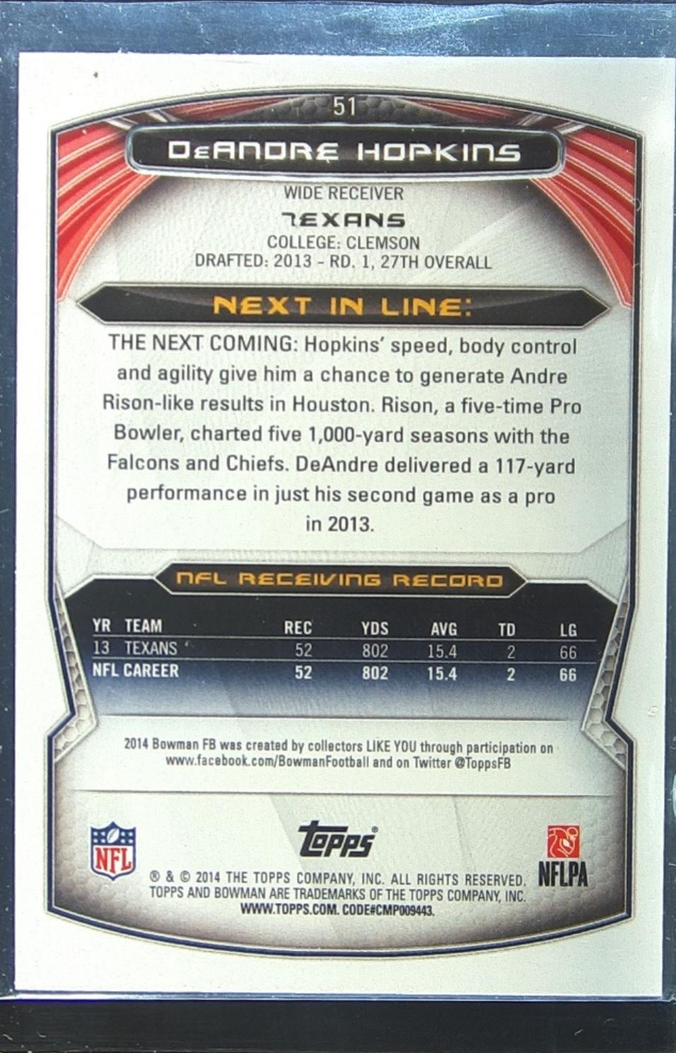 2014 Bowman DeAndre Hopkins Veterans Rainbow Purple #51 Texans