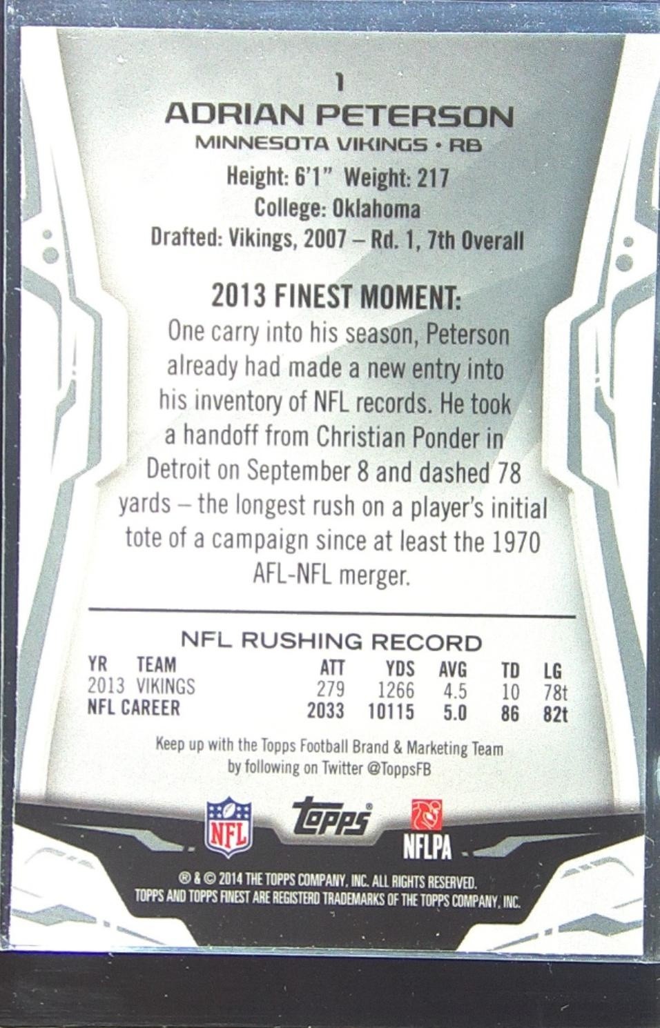 2014 Finest Adrian Peterson Refractors #1 Vikings