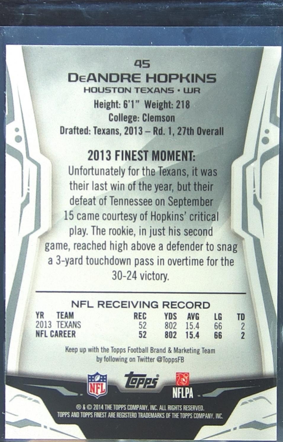2014 Finest DeAndre Hopkins Refractors #45 Texans