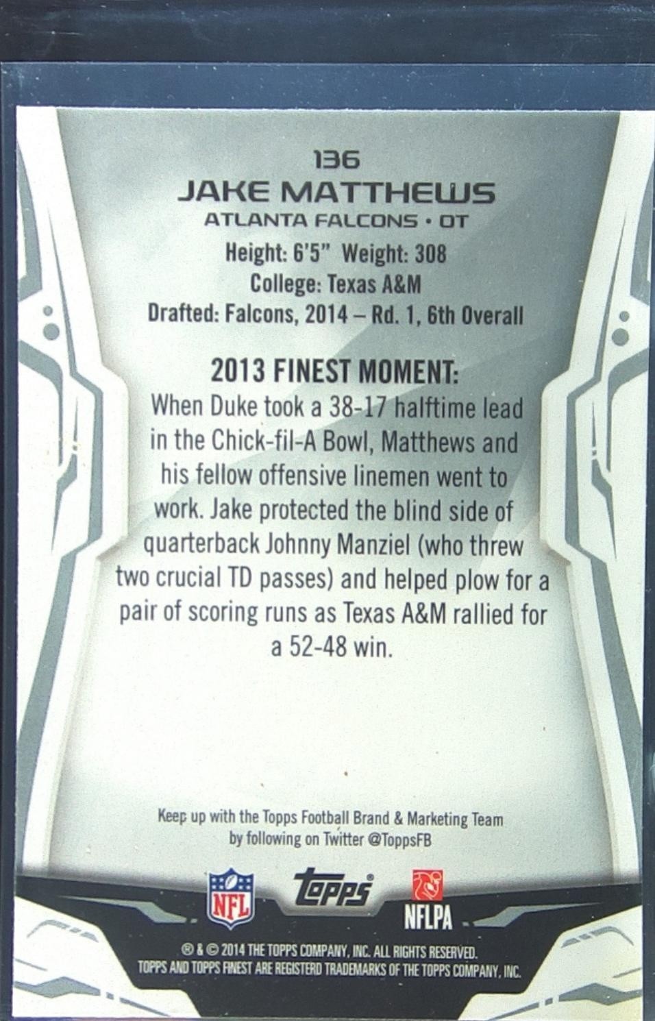 2014 Finest Jake Matthews Refractors RC #136 Falcons