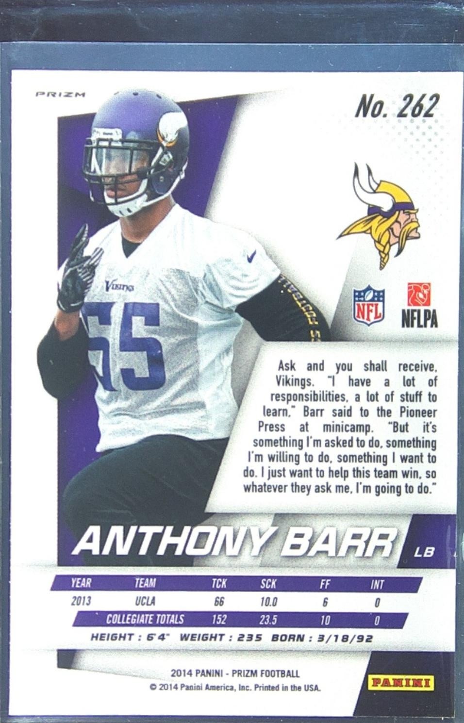 2014 Prizm Anthony Barr Panini Logo Prizm RC #262 Vikings