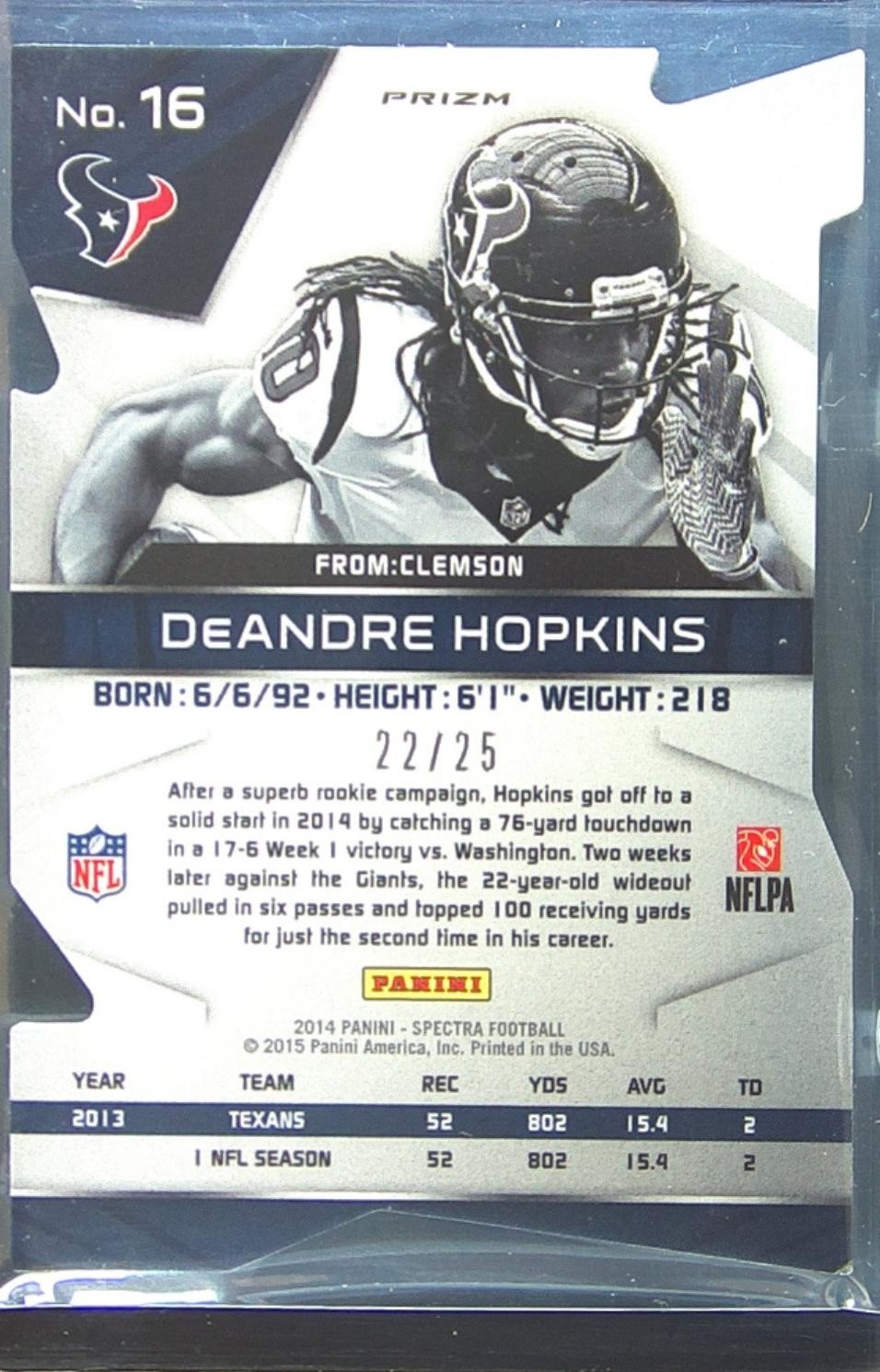 2014 Spectra DeAndre Hopkins /25 #16 Texans Prizms Blue Die Cut